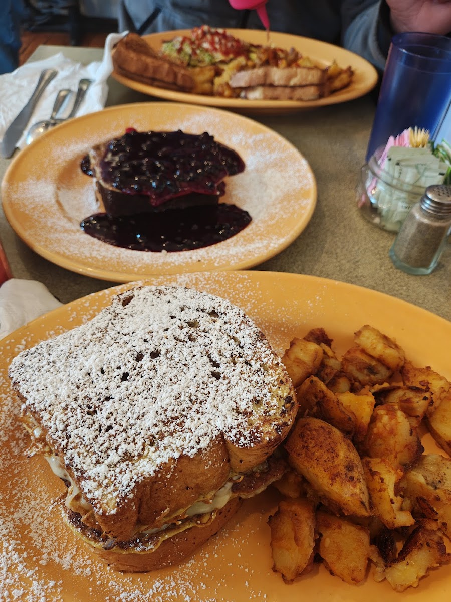 Was wary coming in but when the food came out I was blown away. The Monte Cristo is a double stacked French toast with cheese and sausage in between. The BANANA BREAD FRENCH TOAST WITH HOMEMADE BLUEBERRY TOPPING was to DIE for. 10/10 I want to come back and try the lunch menu. I will be back with friends for sure.